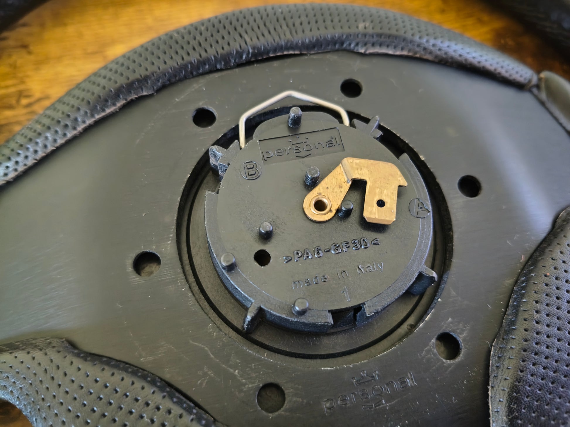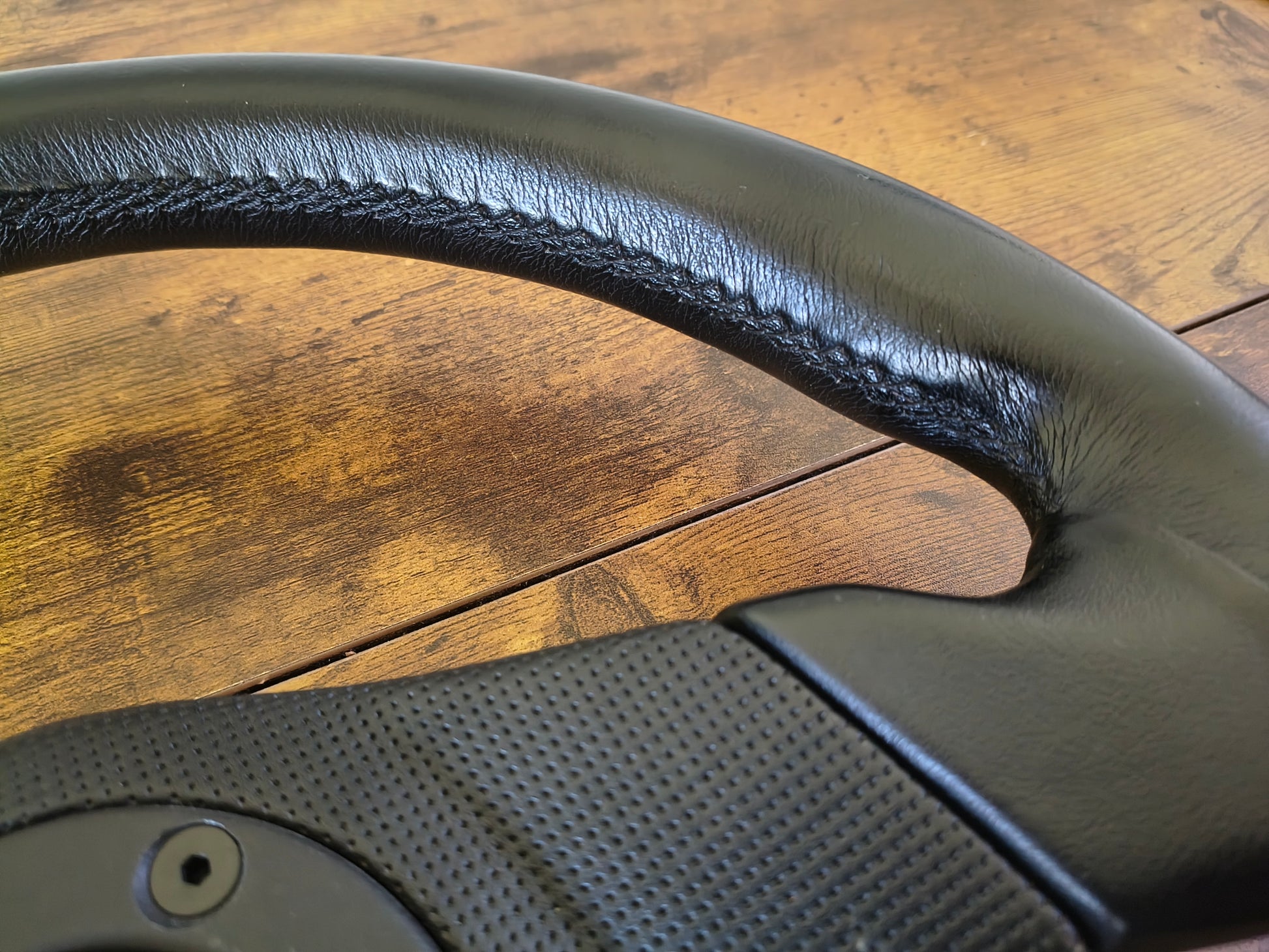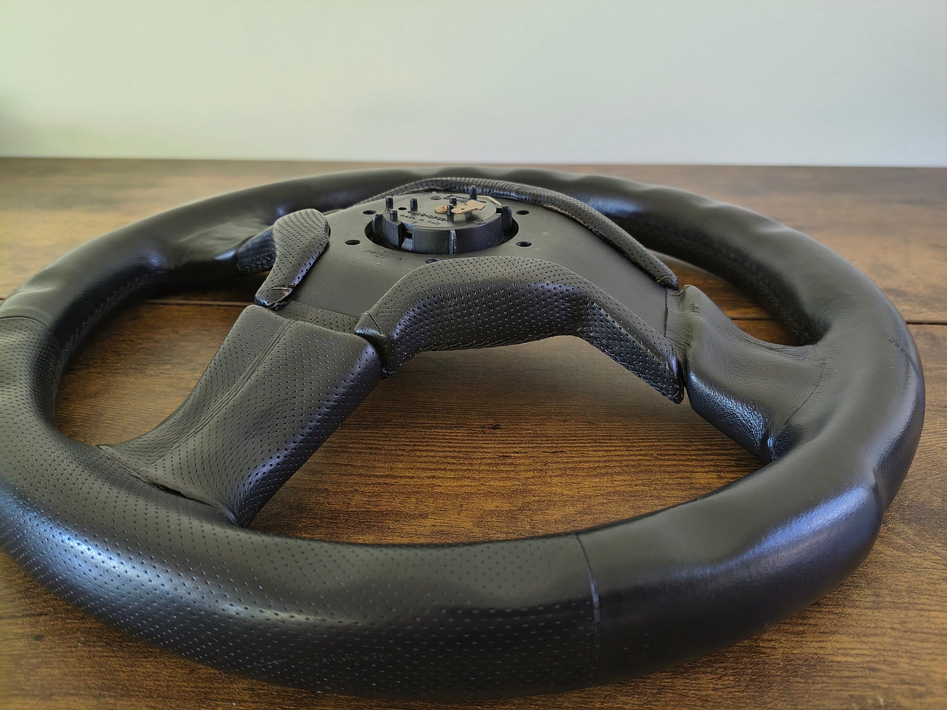 Vintage Work Equip Leather Steering & Wheel Horn Button - Black / Silver