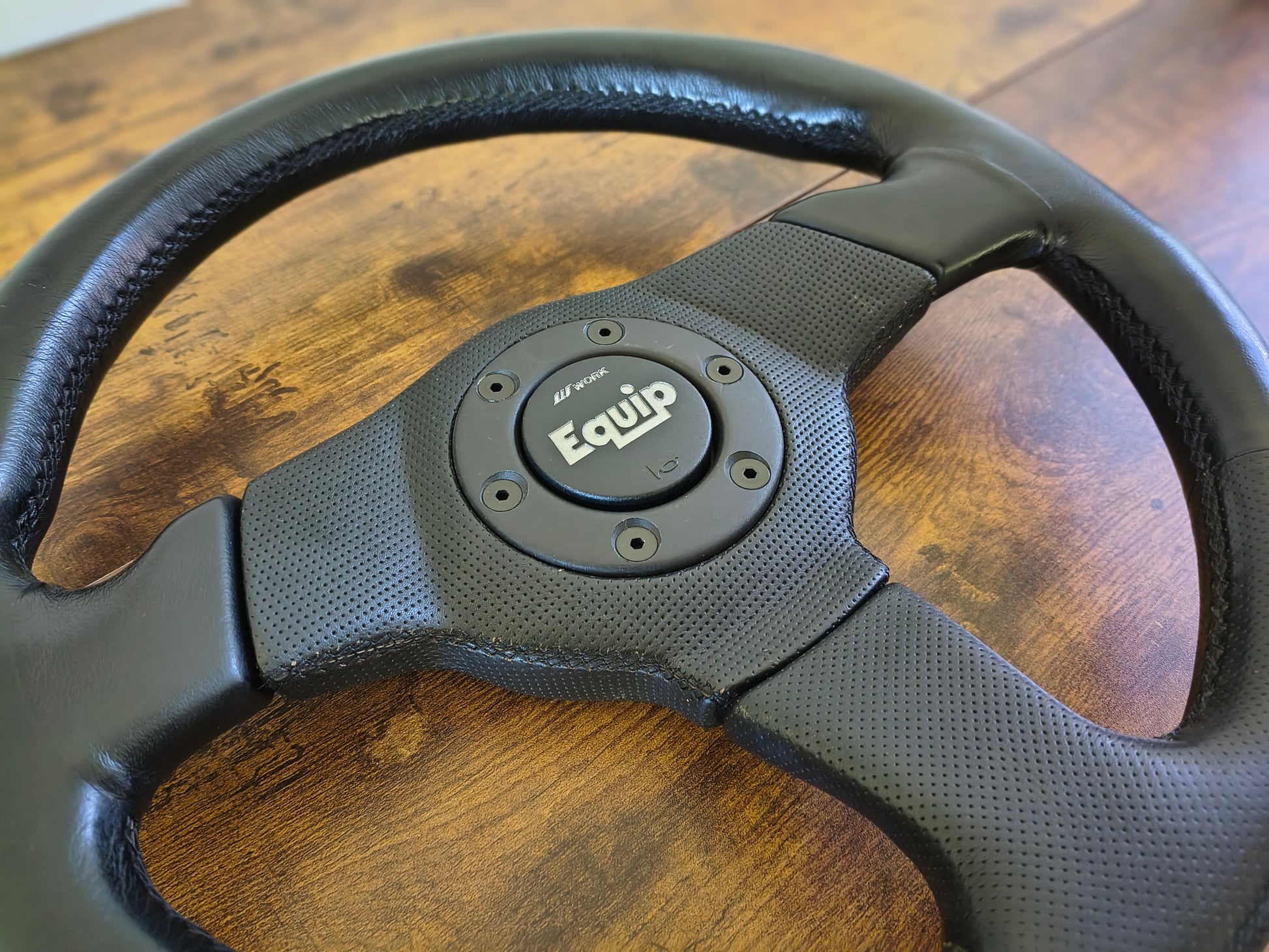 Work Equip Leather Steering & Wheel Horn Button - Black / Silver