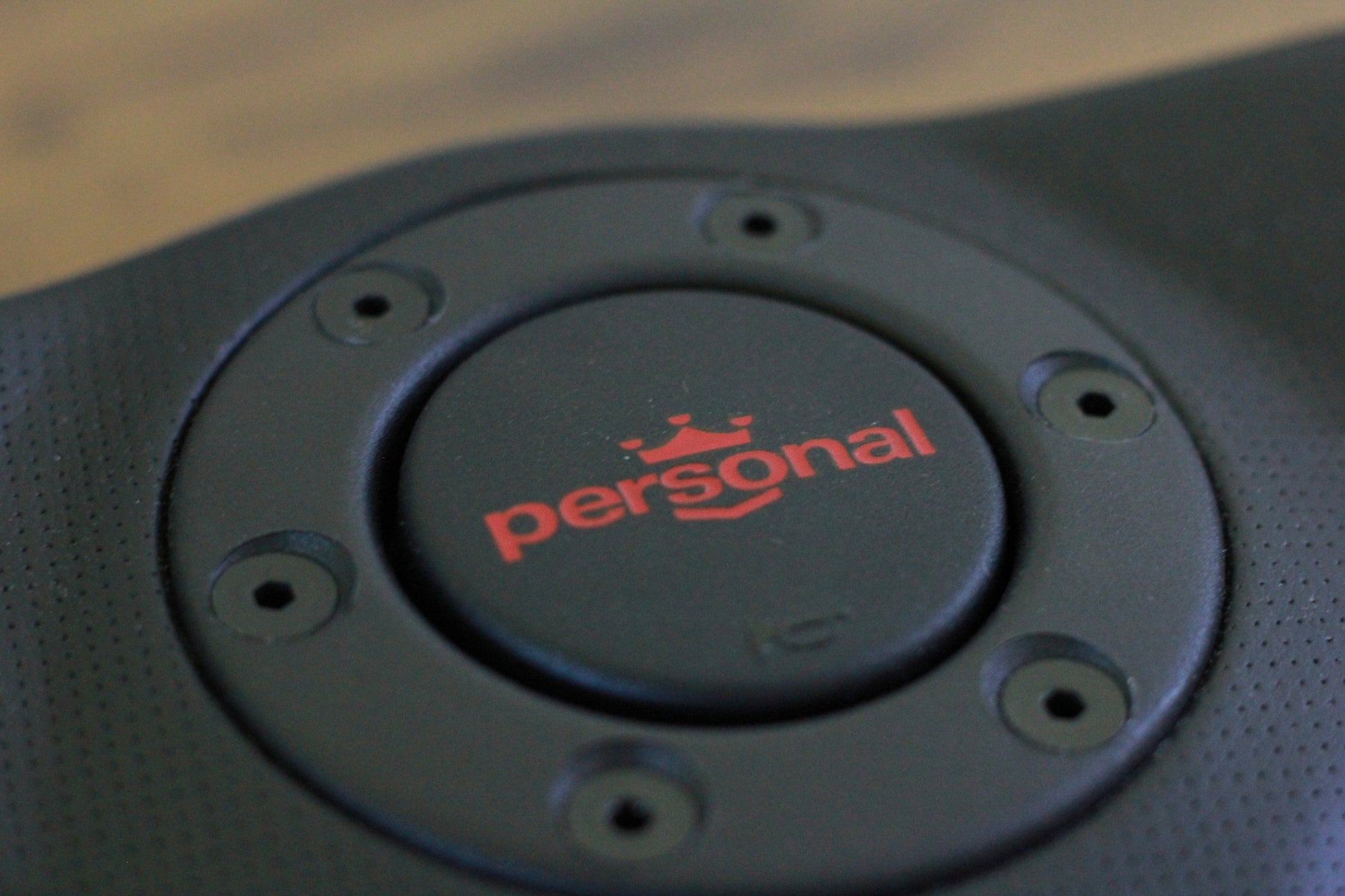 Vintage NOS 350mm Personal Tornado Leather Steering & Wheel Horn Button - Black / Red